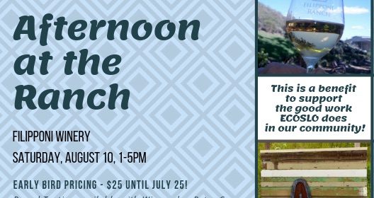 –Join ECOSLO at the Filipponi Ranch Winery to celebrate summertime and enjoy “an Afternoon at the Ranch.” Come out on Saturday, Aug. 10 from 1pm-5pm Full Article